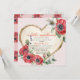 Este convite rústico "um pouco de amor está a caminho" do chá de fraldas virtual/zoom/facebook/online apresenta uma fatia de madeira em forma cardíaca com flores vermelhas e brancas. O verso apresenta um fundo cor-de-rosa com padrões florais. Personalize-o para as suas necessidades. Você pode encontrar produtos correspondentes na minha loja.