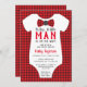Convide os participantes para o seu chá com este convite de chá de fraldas clássico do homenzinho! Disponível em muitas cores e padrões.