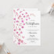 Uma ilustração encantadora de aquarela com flores silvestres rosa e fuchsia em um estilo bonito e adorável decora este convite de chá para menina que é perfeito para uma celebração de primavera ou verão. Flores cor-de-rosa e cor-de-rosa se entrelaçam para formar um quadro de arco, para um suave e doce convite para celebrar a chegada da sua pequena flor selvagem no caminho.