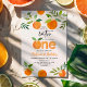Este design apresenta laranjas pintadas manualmente com aquarela e verde.