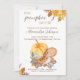 Pequeno dinossauro de abóbora convite para chá de fraldas. Sexo neutro adequado para o outono de rapazes e raparigas