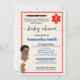O Africano Americano Pequeno Médico a Caminho do Convite para Chás de fraldas Médicos. Adicione texto ao design, para alterações adicionais (cor da fonte, estilo da fonte), clique em personalizar, role para baixo e clique no link "Editar usando a ferramenta Design". ** A cor de fundo creme é incorporada no design para ser impressa em fundo branco. ** - Verificar a coleção para todos os designs correspondentes-