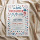 Este design apresenta um tema do chá de fraldas de 4 de julho "A Little Firecracker is on way" com ilustração vermelha de um bombeiro branco e azul junto com estrelas e listras. Perfeito para um chá de fraldas patriótico.