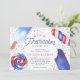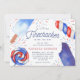 Convites de festas adoráveis para um chá de fraldas de verão apresentam quatro ilustrações de picolé de cor d'água em tons clássicos de vermelho, branco e azul, pontilhados com fogos de água correspondentes. "Está a caminho um pouco de bombeiro" aparece no centro, com os detalhes do seu chá de fraldas por baixo. Uma paleta de cores patriótica festiva torna este convite perfeito para chás de fraldas que caem perto de 4º de julho, Dia do Trabalho ou outras férias de verão.