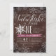 Brrr! Convites chiques para comemorações do primeiro aniversário de inverno apresentam uma borda branca com flocos de neve em um fundo chalkboard rústico com sotaques de cor púrpura de ameixa. "Nosso floco de neve está girando um" aparece no topo em letras de escrita de caligrafia branca, com um floco de neve posicionado para a letra "O". Personalize com seus primeiros detalhes de festa de aniversário abaixo usando os campos modelo.