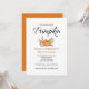 Pequeno gênero de abóbora Convite neutro para Chás de fraldas, com cores de queda, abóbora e design de script. Com a inscrição personalizável, você adiciona suas próprias informações. A parte de trás tem uma cor laranja a ser adicionada ao contraste. Excelente para planejar uma celebração especial para os novos pais.