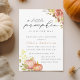 Convite personalizado para chá de fraldas de outono com caligrafia moderna "uma pequena abóbora" com elegante outono floral e design de abóboras.