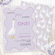 Celebre o seu grande dia com este encantador primeiro convite de aniversário, com um ganso pintado à mão num chapéu de festa e fita sobre um fundo púrpura macio de lilac pastel com uma moldura ondulada e verificações de gingham lilás correspondentes. A doce arte guache e o nome moderno da escrita tornam-na perfeita para rapazes e raparigas de um ano. Todo texto é totalmente personalizável, e a parte traseira inclui um padrão de ganso correspondente para um toque extra encantador! Arte original de Nic Squirrell.