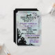 Entre no espírito do Halloween com este convite espetacular! Com um fundo azul claro e roxo adornado com morcegos pretos e uma misteriosa casa assombrada. Este convite define o tom perfeito para uma festa de Halloween. Se você está organizando uma festa à fantasia ou um aniversário com tema de Halloween, este design assustador certamente vai deliciar seus convidados. Não perca a oportunidade de enviar este convite divertidamente assustador e deixar seus convidados animados para uma noite de diversão sinistra!