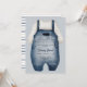 Convite para Chá de fraldas de Homem Pequeno Bonito com uma pintura aquarela de uma roupa de bebê, roteiro cômico e modelo de texto totalmente personalizável. Padrão riscado no backer em tons de azul correspondentes.
