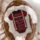 Convite para Chá Rustic Lumberjack Baby Boy, Arco Tie, Suspender e xadrez azul de búfalo Personalizar