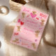 Cartão de modelo de convite para chá de fraldas de de menina, bonito e com tema de Dia de os namorados doce, com cães anjos ilustrativos com motivos namorados. O texto diz "um pouco de amor está a caminho".