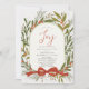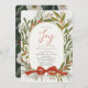 Este elegante e festivo convite de "um pequeno pacote de alegria" para a chá de fraldas da menina apresenta uma coroa de verde e de bagas vermelhas com um arco vermelho/fita em um fundo creme. O verso apresenta um fundo azul marinho com padrão floral. Perfeito para inverno/feriado/chá de fraldas de Natal! Personalize-o para as suas necessidades. Você pode encontrar produtos correspondentes na minha loja.