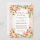 Bonita, aquarela, doce pastel cor-de-rosa floral, convite para chá de menina de pêssego floral. Todos os elementos são escolhidos para trazer boas vibrações, com uma mistura de cores de verão: rosa pálido, bege, laranja e verde-grama. O contexto charmoso com pontos, juntamente com a escrita manual moderna e elegante escrita, torna esta design perfeita para as celebrações do chá de uma menina de verão.