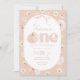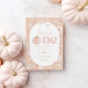 Uma abóbora fofa! Abóbora Floral e arco Convite para primeiro aniversario Previsto com fundo de pêssego com margarida, abóbora e arco rosa fofo.