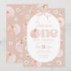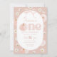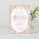 Uma abóbora fofa! Abóbora Floral e arco Foi um convite para primeiro aniversario da menina com fundo rosa com margaridas, abóbora e arco rosa fofo.
