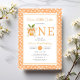 Um Pequeno E Bonito Convite De primeiro aniversario De Citros Laranja. Celebre o primeiro marco do seu filho com o nosso pequeno Convite para primeiros aniversarios de citrinos de laranja! Este doce design com uma fruta laranja encantadora com um arco é perfeito para a sua celebração de primeiro aniversário de verão. Peça agora! Acessórios correspondentes disponíveis.