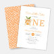 Convite Moderno para primeiro aniversario de Citrinos Laranja-Cutie. Celebre o primeiro marco do seu filho com o nosso pequeno Convite para primeiros aniversarios de citrinos de laranja! Este doce design com uma fruta laranja encantadora com um arco é perfeito para a sua celebração de primeiro aniversário de verão. Peça agora! Acessórios correspondentes disponíveis.