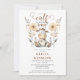 Um convite de festas de primeiro aniversario pastel de cor aquosa, doce e ilustrado, com creme rústico e tons e flores castanhos. Sexo neutro para garotinha. Um estilo bonito de terra com um fluxo ritmado adorável de tipo e imagem.