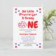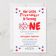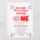 Convites modernos para primeiros aniversarios de fogos de artifício. O plano de fundo é branco, mas pode ser personalizado para uma cor de sua escolha.
