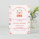Celebre o seu primeiro aniversário com este convite de festas fofo de um porco! Apresentando um leitão sorridente numa festa cercada por doces e confetti, este convite de aniversário rosa e laranja é perfeito para meninas que fazem um. Personalize todo o texto para se adequar aos detalhes da sua parte. Ideal para fazendas, jardim de galhardetes ou festas de aniversário de primeira temática doce.
