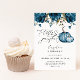 Cartão de convite de aniversário do menino da queda, bonito, com ilustração aquosa de abóboras azuis com flores. O texto diz "nossa abóbora XX está virando X."