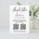 Este convite é pequeno em tamanho, mas grande em simplicidade moderna. Convide familiares e amigos para uma celebração de casamento simples e elegante com um convite único e elegante de 3,5 "x5" com código QR para RSVP. Com apenas um cartão, você pode convidar os convidados para a celebração do seu dia especial, fornecer todas as informações importantes (como direções, lista de presentes, acomodações de hotel) e deixar que o site organize as respostas. Não são necessários cartões adicionais. A imagem e todas as palavras são fáceis de personalizar para incluir quaisquer detalhes de sua escolha. (DICA DE COLOCAÇÃO DE IMAGEM: Uma maneira fácil de centralizar uma foto exatamente como você deseja é cortá-la antes de fazer o upload para o site da Zazzle.) O design moderno e minimalista preto e branco apresenta uma foto do casal, 2 códigos QR personalizados, caligrafia manuscrita e tipografia clássica e elegante. Ao escanear um código QR com a câmera do telefone, os convidados são enviados diretamente para o site do casamento para obter mais detalhes e responder ao convite. Um processo de RSVP online reduz a chance de que cartões sejam perdidos no correio. Também é mais versátil, pois você pode solicitar informações mais específicas, como escolhas de refeições, alergias alimentares e pedidos de música. Todas as informações de resposta podem ser personalizadas ou excluídas. Este convite contemporâneo é um acréscimo sofisticado para a celebração do seu dia especial. Parabéns à noiva e ao noivo!