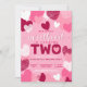 Um Pequeno Convite Para segundo aniversário De Dia de os namorados Cardíaco. Convites de festas de segundo aniversário de nomes e endereços personalizados, com fundo cor-de-rosa pastel e corações cor-de-rosa, branco, magenta e burgundy. fácil de personalizar modelo, para o segundo aniversário de uma menina de dois anos.