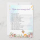 Este é um jogo de chá de fraldas divertido que testa quão bem cada convidado conhece a futura mãe. Cada convidado recebe um conjunto de perguntas relacionadas à futura mãe, e eles preenchem suas respostas em um cartão. O convidado que responde mais perguntas corretamente ganha o jogo.