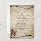Convite de casamento com um local antigo sobre a imagem de papel pergaminho de vinheta. Cadeia de miçangas com uma imagem de broche de borboleta que parece brilhar. As informações do anúncio do casamento são dadas na frente do cartão. Personalize este modelo com suas informações. Edite-o para mais alterações. Mude isso para qualquer ocasião, aniversário, Dia de os namorados etc.