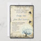 Árvore Whimsical Molho Azul Folha do Coração com Aves Vintage Apaixonadas no Pergaminho Faux Swirly Pearl Faux com Invitações de Bordas Queimadas - Samack