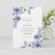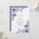 This design features delicate periwinkle blooms and white floral accents rendered in a soft watercolor style. Accompanying foliage in shades of green and blue adds a touch of natural elegance. The overall mood is romantic and ethereal.