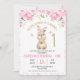 Pernalonga Floral Rosa Dourada Um Primeiro Convite de Aniversário Cute um coelhinho está fazendo um convite de aniversário com um belo coelho peludo, arranjos florais cor-de-rosa, duas borboletas, alguns pontos e um número de brilho de ouro falsa removível. Este convite de aniversário para o coelho é uma forma doce de convidar convidados para uma próxima festa de aniversário temática para um coelhinho para uma menina.