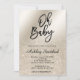 Um design de folha metálica glitter ombre de marfim pérola, chic e luxuoso, com elegante tipografia caligráfica para um convite ao chá de fraldas Oh baby typography.
