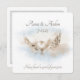 Feche a pérola do solteiro em uma concha com pasta azul e abstrato bege moldura contemporânea para convite de casamento