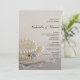Convide os convidados para a sua cerimônia de casamento e recepção com os bonito Brancos, Anel Diamante e Convite para Casamento de Lugar Azul. Este clássico convite nupcial personalizado apresenta uma fotografia de um colar branco de pérolas, um anel de noivado de diamante e um lenço azul e branco aparado de renda, bem como fundo branco de cetim.