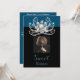 Uma combinação elegante de azul escuro com um simples fundo preto. No centro há um broche azul e branco feito de diamantes azuis e pérolas brancas ninhos em uma cama de penas brancas.