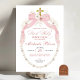 Pérolas cor-de-rosa Primeiro Santo Convite Comunitário, Boho Floral Santa Convite Cruzado de Comunhão, Primera Comunhão Católica