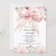 Convites Pérolas de laço rosa menina Batismo