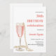 Um convite moderno, na moda e glamouroso para uma festa de aniversário de Pérolas e Prosecco (qualquer idade) Um fundo branco com vidro, flauta com bolhas e pérolas cor-de-rosa. O nome é escrito com um moderno estilo escrito à mão. Personalize e adicione os detalhes da sua festa.