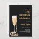 Um convite moderno, na moda e glamouroso para uma festa de aniversário de Pérolas e Prosecco (qualquer idade) Um fundo preto com vidro, flauta com bolhas e pérolas de ouro. O nome é escrito com um moderno estilo escrito à mão. Personalize e adicione os detalhes da sua festa.