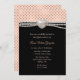 Glam Quinceanera Birthday Invitation feito a preto, com rosa de ouro e bolinhas de pincel e gráficos de fios de pérolas e uma joia de coração de pérolas decorando o topo. Personalize o texto personalizado para o aniversário especial da sua filha.