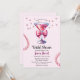 Um design elegante com pérolas cor-de-rosa poeirentas e um copo de prosecco. Você pode personalizar este convite com seus próprios detalhes.