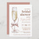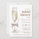 Chá de panela Elegante 'Pearls and Prosecco' com arco rosa, vidro champanhe e sotaques de pérolas quic. Perfeito para um chá de panela de brunch na moda.