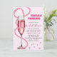 Um design elegante com pérolas cor-de-rosa poeirentas e um copo de prosecco. Você pode personalizar este convite com seus próprios detalhes.