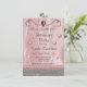 A parte superior da carta é decorada com um elegante padrão Prata e antigo Pink criando linhas complexas com um coração no centro. Na parte traseira do cartão, você pode adicionar uma mensagem relacionada a direções, código de vestimenta e assim por diante.