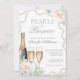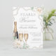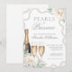 Convite de Chá de Noiva Pérolas & Prosecco. Este design elegante e divertido define o tom perfeito para uma celebração sofisticada. "Pérolas & Prosecco" é apresentado de forma proeminente no topo em uma mistura de tipografia cursiva e fontes serifadas, criando uma aparência sofisticada e ao mesmo tempo lúdica.