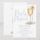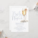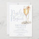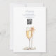 Este convite de festa de noivado em azul empoeirado com escrita elegante, pérolas e prosecco pode ser personalizado com todas as informações do seu evento especial e código QR do registro no verso. Criado por Thisisnotme©