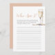 O "Jogo das Pérolas e Prosecco que Sou Eu Chá de panela" é uma atividade viva e interativa onde os hóspedes vestem nomes de etiqueta nas costas com o nome de uma pessoa famosa ou personagem relacionado a casamentos ou amor. Os convidados fazem perguntas uns aos outros, sim ou não, para descobrir quem são, acrescentando um elemento de diversão e riso às festividades do chá de panela.