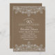 Pérolas de 90 Festa de aniversário e Convites de Localidade. Personalizado para os detalhes da celebração de aniversário: Idade, nome, data e hora, localização, etc. Apresentar um belo local, pérolas e tipografia num fundo escuro rústico. Excelente de convites para aniversários criativos de países. Este convite de aniversário de 90 foi projetado por http://www.superdazzle.com